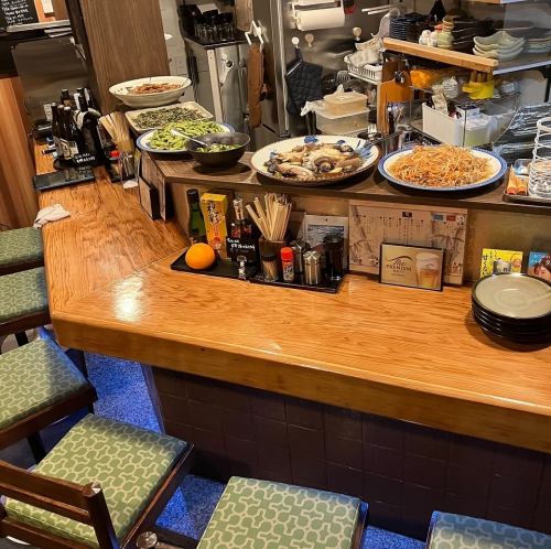 お一人様から少人数グループでも快適に過ごせるカウンター席とテーブル席を完備!木の温もりある店内で心地よい距離感を保ち、親しい仲間と語らう時間にぴったりの空間です。おばんざいや刺身盛り合わせを囲みながら、落ち着いた空気の中でほっとするひと時をお楽しみください。